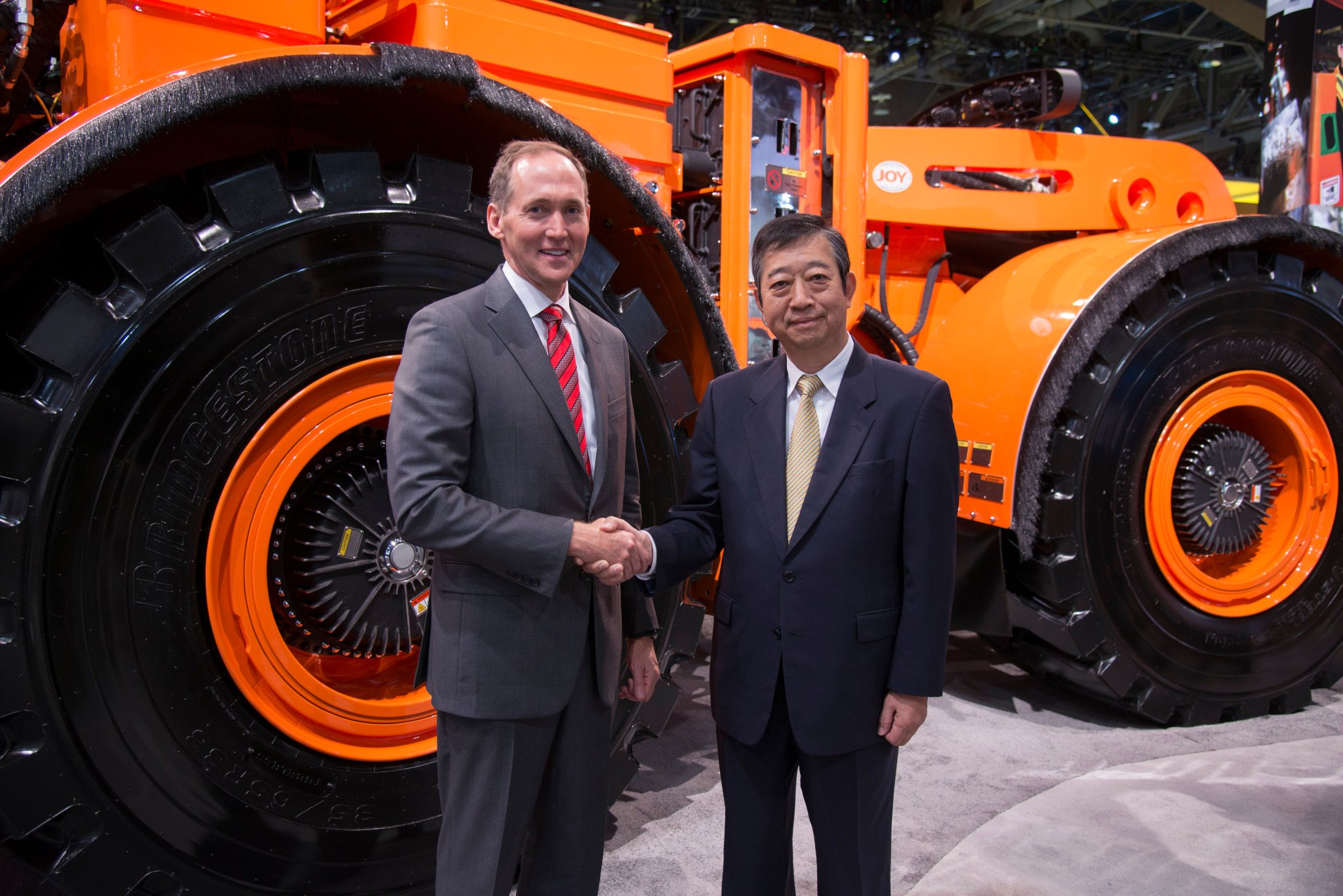 Joy Global – a joyous occasion – Komatsu and Joy Global in July announced an agreement in which Komatsu will acquire Joy Global. CEOs Ohashi and Doheny turned up at Minecxpo2016 to talk all things new innovations driving customer when the acquition is complete in 2017, and post for a lovely photo.